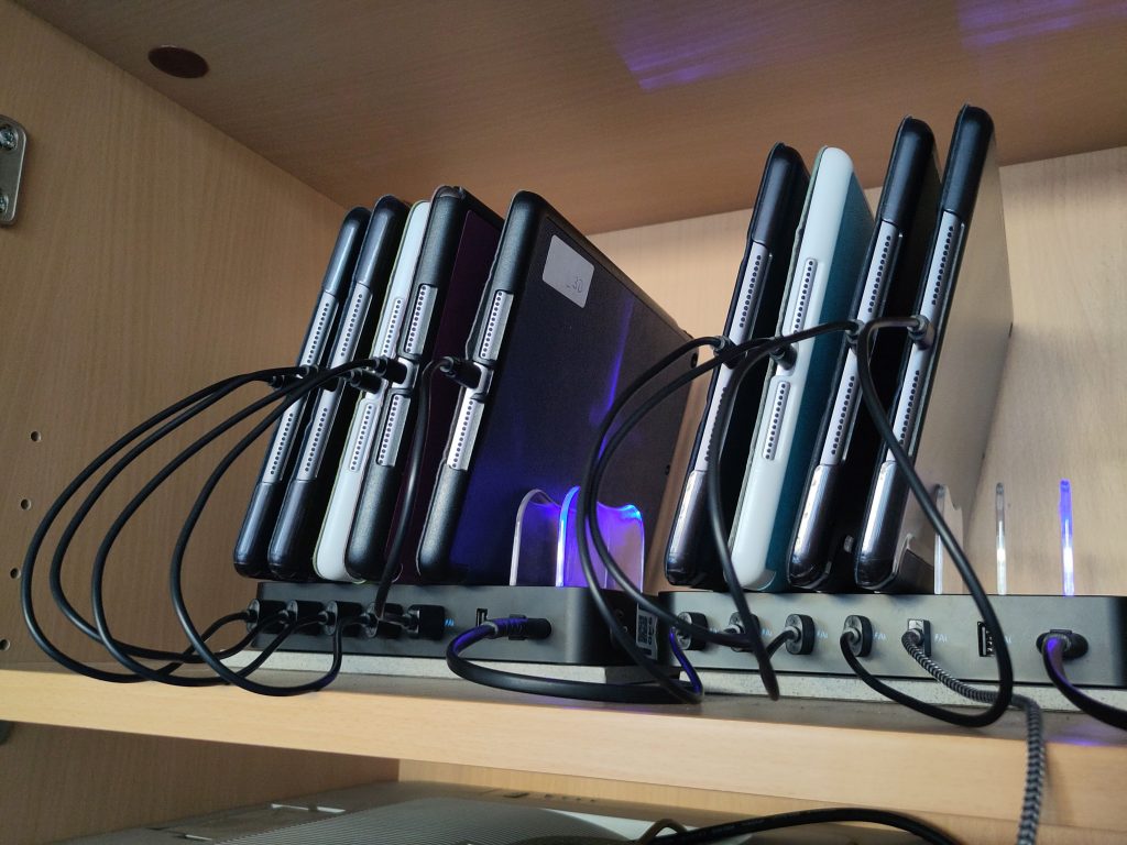 Durch den Digitalpakt des Bundes, vor allem aber durch eine große Spende im Jahr 2018 sind wir beim digitalen Lernen sehr gut aufgestellt. In jeder Klasse stehen 10 Tablets mit Lernprogrammen und anderer kindgerechter Software zur Verfügung. Unsere Lehrerinnen und Lehrer haben durch schulinterne Fortbildungen regelmäßig die Möglichkeit ihre Kompetenzen in diesem Bereich zu erweitern und neue Methoden zu entwickeln und zu erproben. (Foto: Platzhalter – wird noch ersetzt)